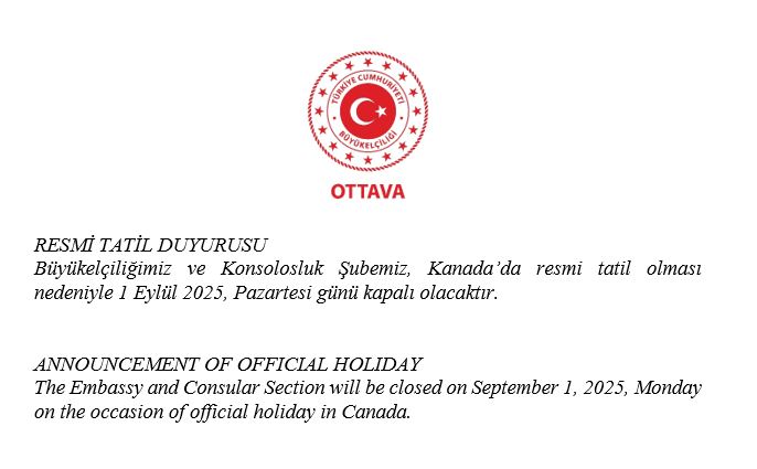 The Embassy and Consular Section will be closed on September 1, 2025, Monday on the occasion of official holiday in Canada.